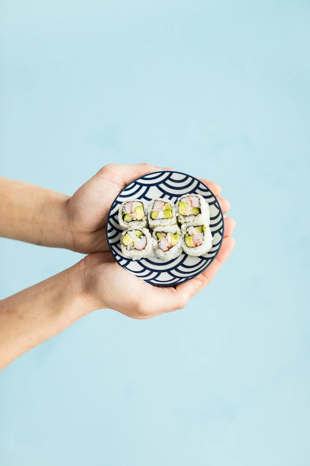For social, we rented out a suite at a local hotel and hired a couple students from the university to take casual at-home shots. We really wanted to push the idea that DK Sushi was more than a stop during lunch at school, but something that could be picked up when hanging out later in the dorms or at the apartment. We also ordered large format seamless backgrounds in our branding colors to shoot the packaging and sushi on, specifically to promote the sleek boutique sushi box. Finally, we wrapped a giant pillar by the kiosk with a gorgeous fish pattern for that social media moment!