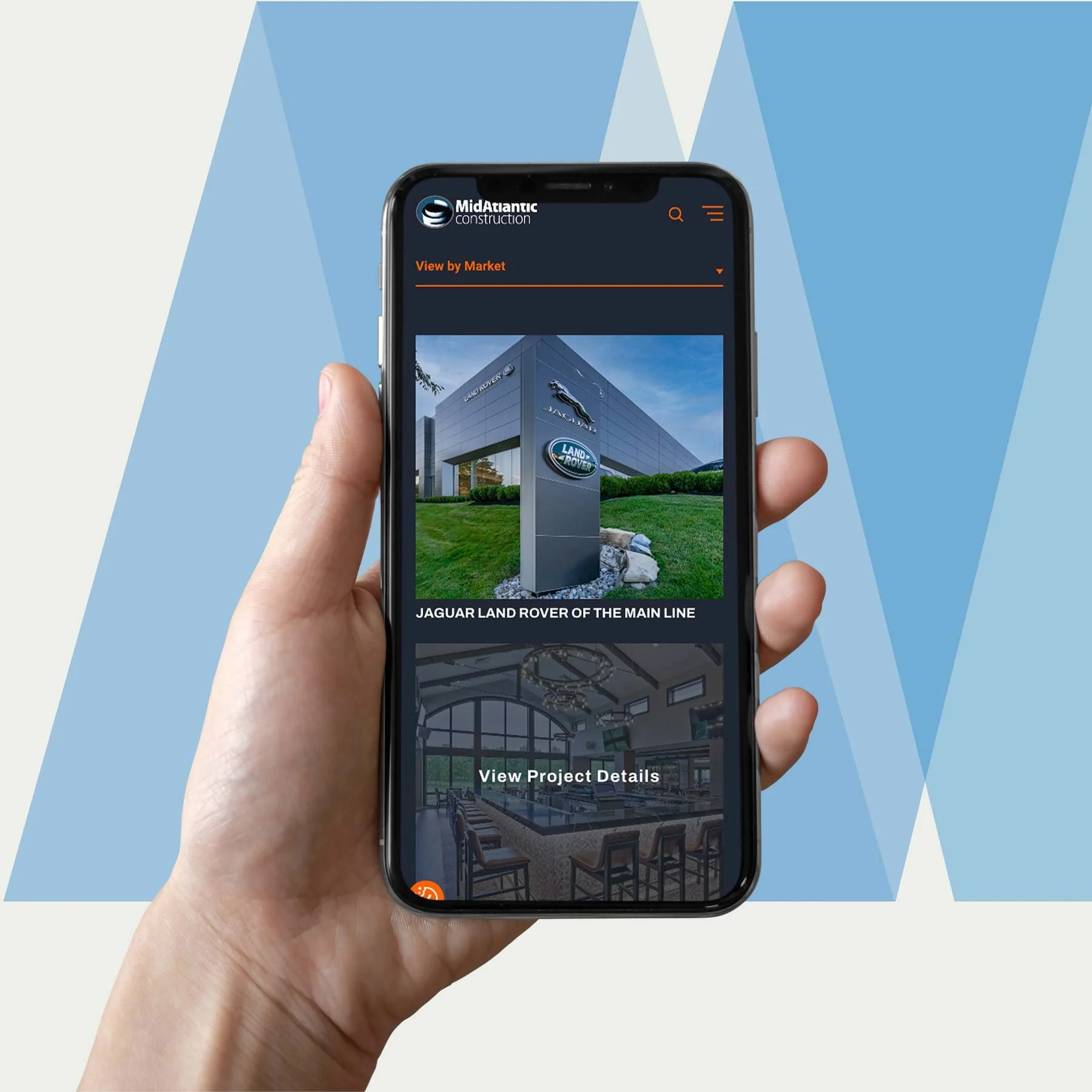 A seamless mobile experience was a top priority for the new MidAtlantic website, ensuring accessibility and ease of use across all devices—especially smartphones. In an industry where teams are constantly on the move, a mobile-optimized site allows employees and clients to quickly find essential information, from contact details to project updates and service offerings. Prospective clients, partners, and job seekers often browse on the go, making intuitive navigation, fast load times, and clear readability critical. Additionally, a mobile-friendly design enhances search engine rankings, increasing visibility and driving more traffic.