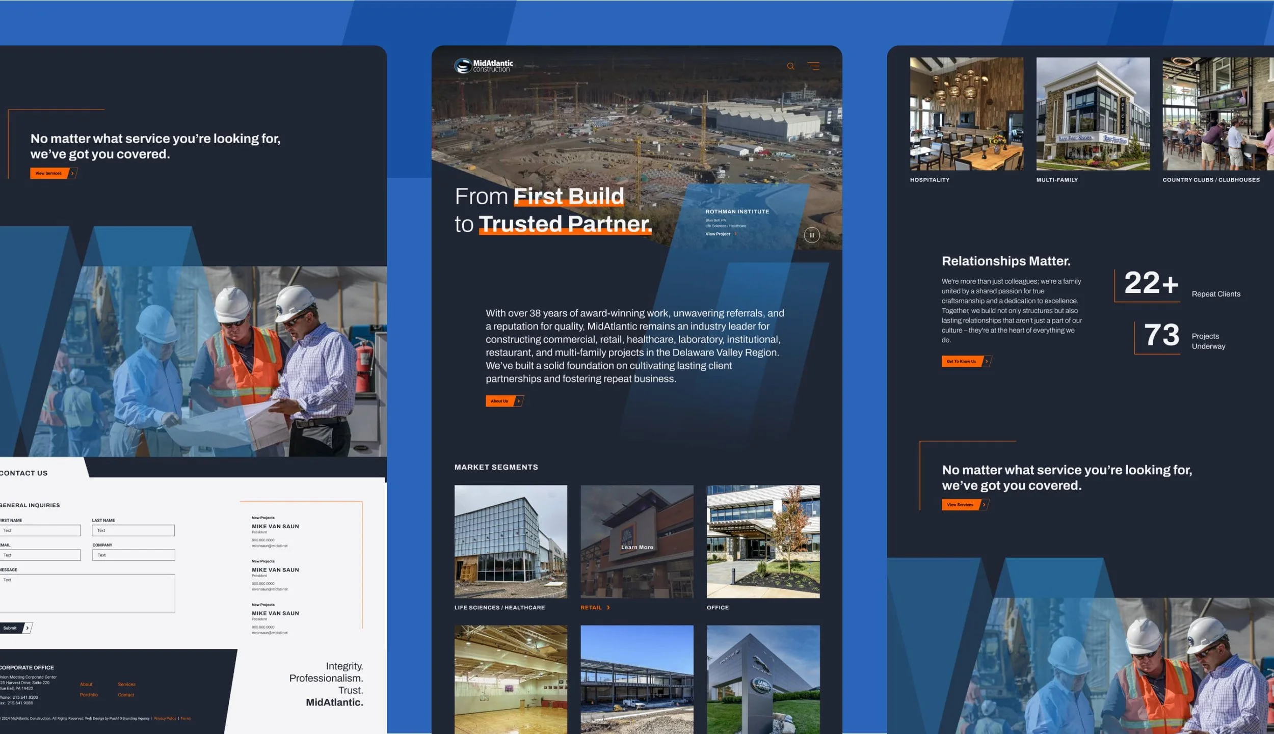 The Ask. MidAtlantic Construction recognized that their website needed more than minor updates—it was time for a full overhaul. The original site, which we designed a decade ago, had served them well, but as the business expanded and client expectations evolved, they needed a digital presence that kept pace. Their new website had to reflect the modern quality of their work while also effectively attracting inquiries from potential clients.